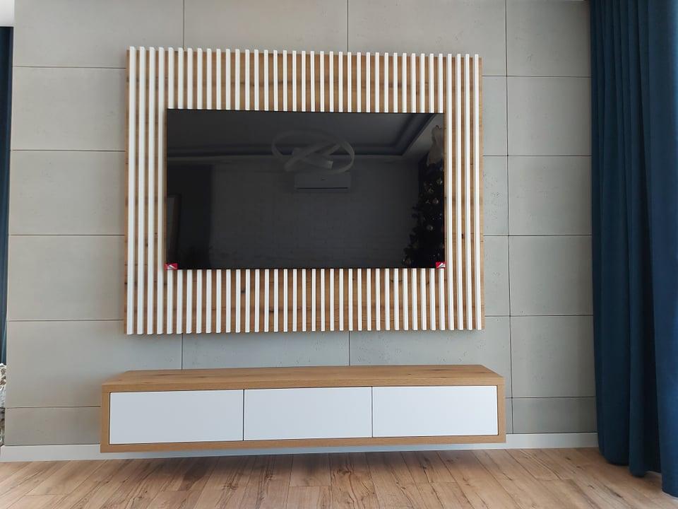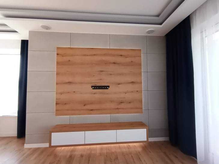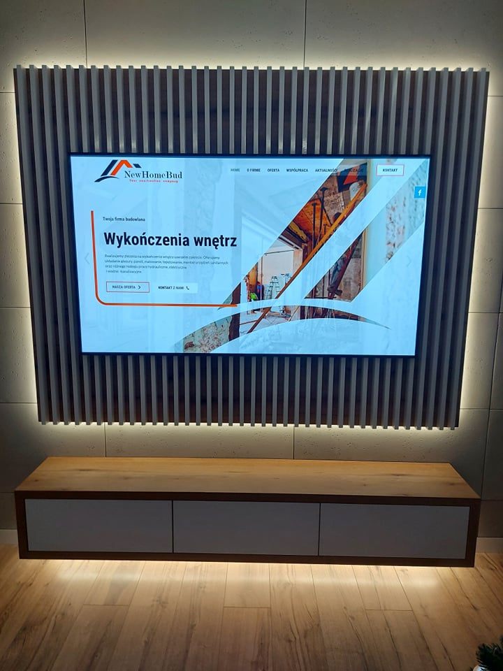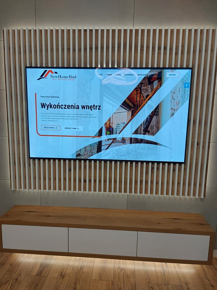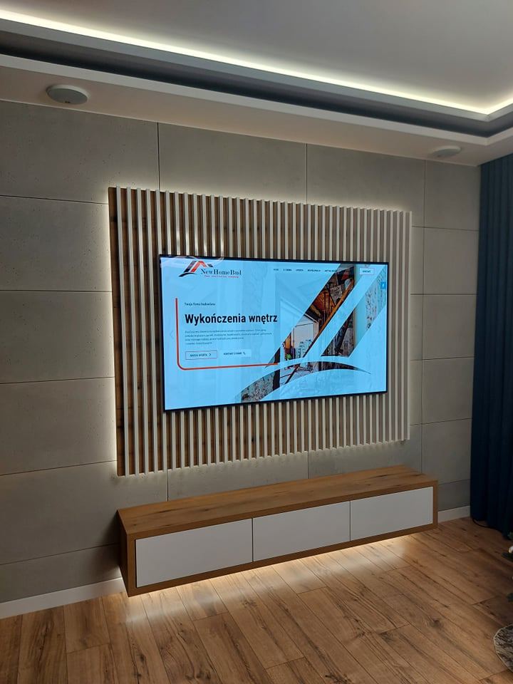 Dodatkowo na życzenie klienta nasza ekipa zamontowała nagłośnienie w salonie oraz wykonała montaż i przyłącz telewizora. Uzupełnieniem całej aranżacji stało się zawieszenie szafek wykonanych w naturalnym kolorze drewna w połączeniu estetyczną bielą frontów. Wykończenie wnętrz w Dąbrowie Tarnowskiej pozwoliło uzyskać estetyczny oraz spójny wygląd całego salonu. Poniżej przedstawiamy galerię zdjęć wykonanych po zakończeniu inwestycji.